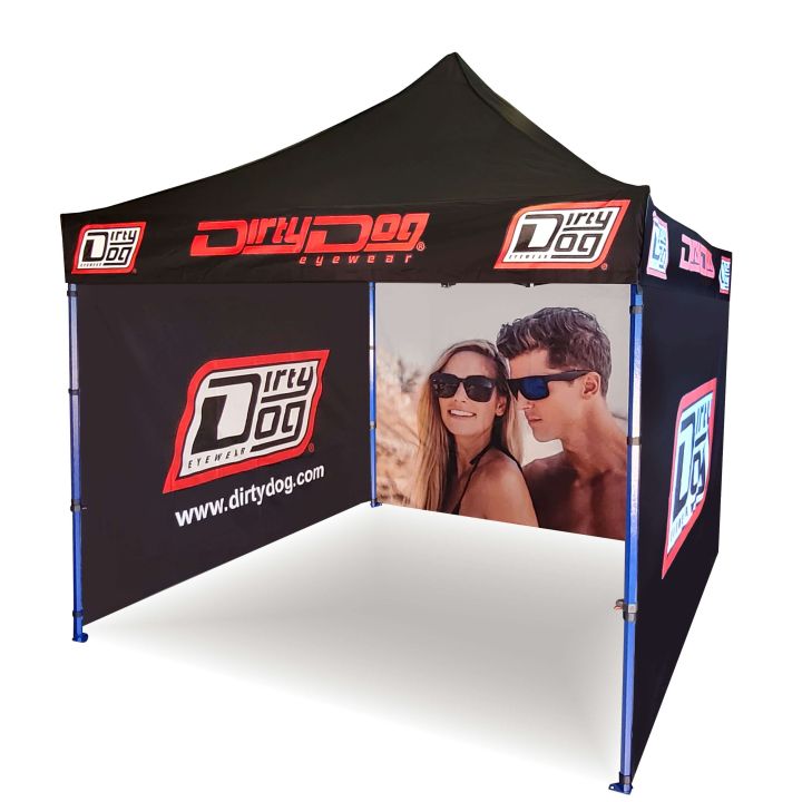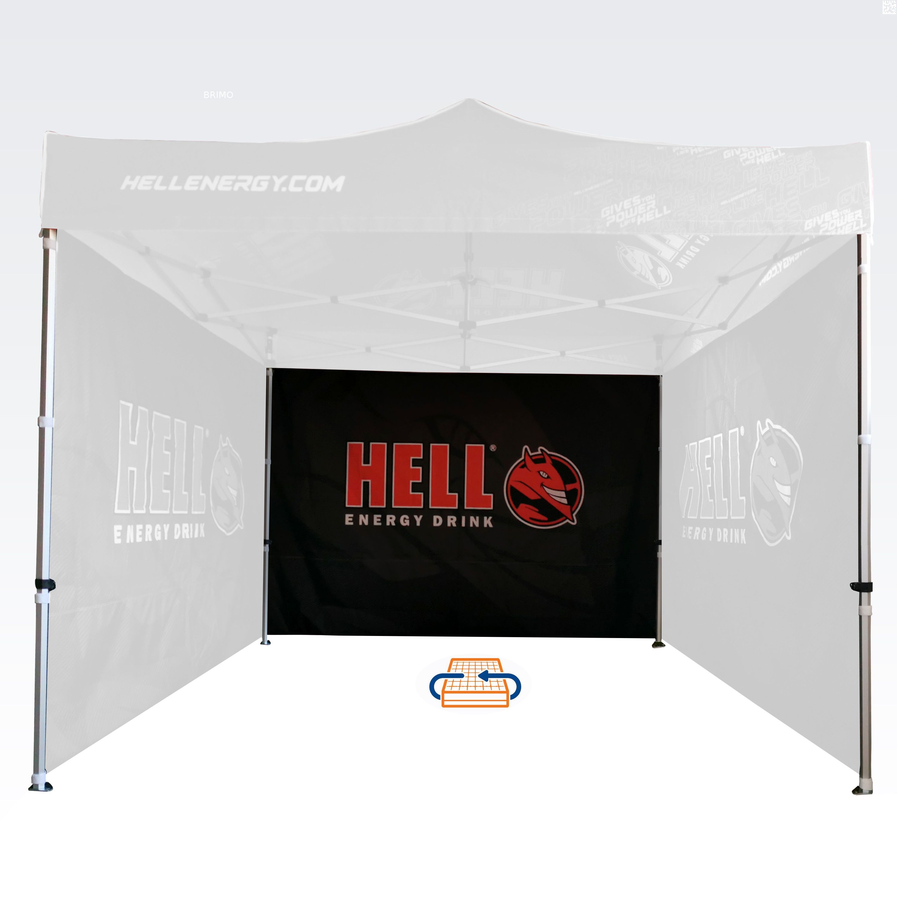 Reklamné stany s digitálnou sublimačnou tlačou. Tento proces sa uskutočňuje chemickou reakciou, kde atrament pod vysokou teplotou preniká priamo do štruktúry látky. Logo, text alebo akýkoľvek druh grafiky na vnútornej alebo vonkajšej strane stanu podľa želania zákazníka.